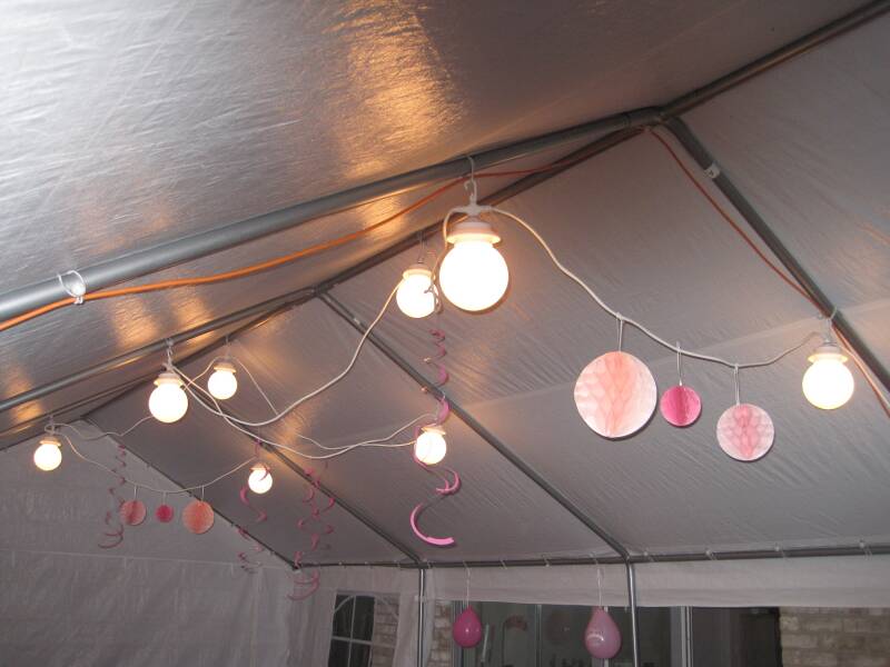 er is ook verlichting voor in de tenten te verkrijgen